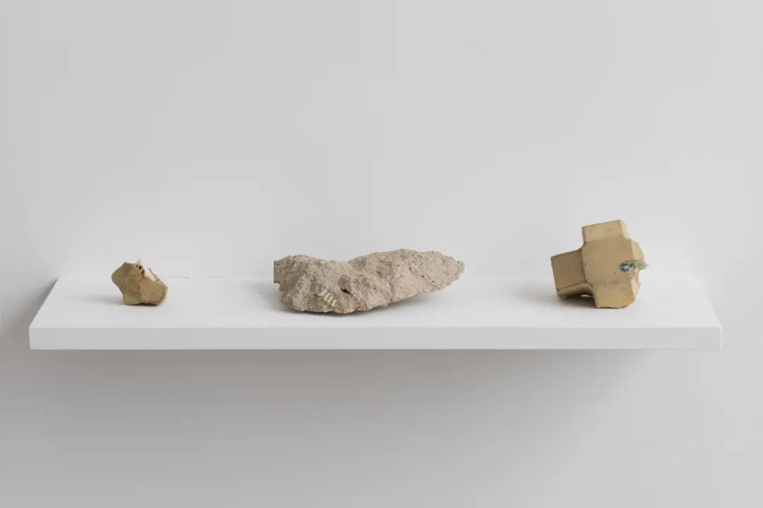 “琥珀” 系列创作于 “(临时的) 小器具” 系列之后,可以看作是艺术家对后人类世界的一种想象,而此次并未展出的作品 “一个被恰当重塑的过往”(2017) 则像是对 “前人类世” 的找寻。在这件作品中,郭城在荷兰阿姆斯特丹西北的一块二战后填海造出的土地上,制造了一块 “无人类痕迹” 的土地。这块土地面积为 1 平方米,深度为当地填海造陆的厚度。郭城分步挖出这块土地,清除了土壤中的两种人造物 —— 由二战废墟而来的建筑残渣构成的表面硬化层,以及下层土壤颗粒吸附的微塑料颗粒,然后再将处理过的土地重新填回坑内。整个过程被记录在视频之中。