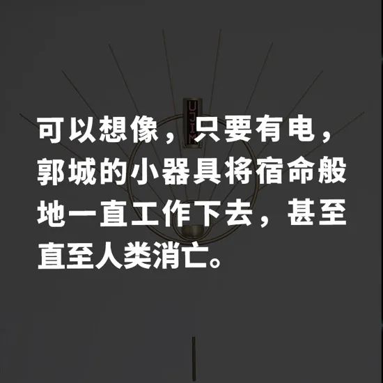 艺术家郭城学习工业设计出身,设计的思路仍然体现在他的创作中。然而,如果说工业设计的目的是通过顺滑的用户体验来服务人类文明进步的美梦,那么郭城就是一个最不识趣儿的设计师。他的作品无意于提供任何服务,相反,它们就像安静的公寓里一根漏水的管子,持续不断地发出声音,搅得人心绪不宁。