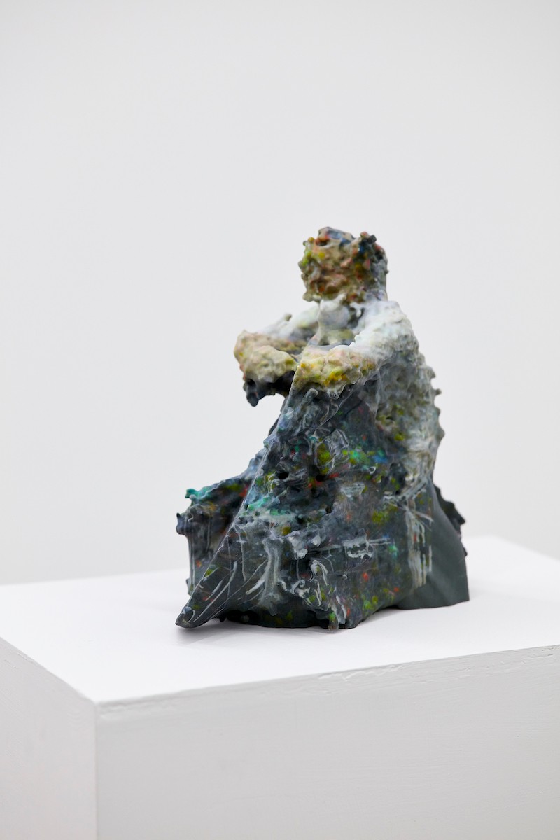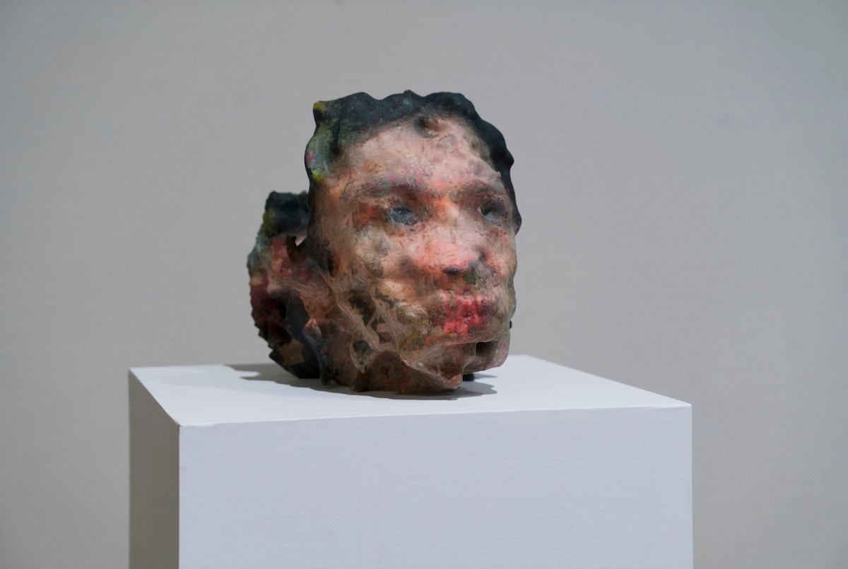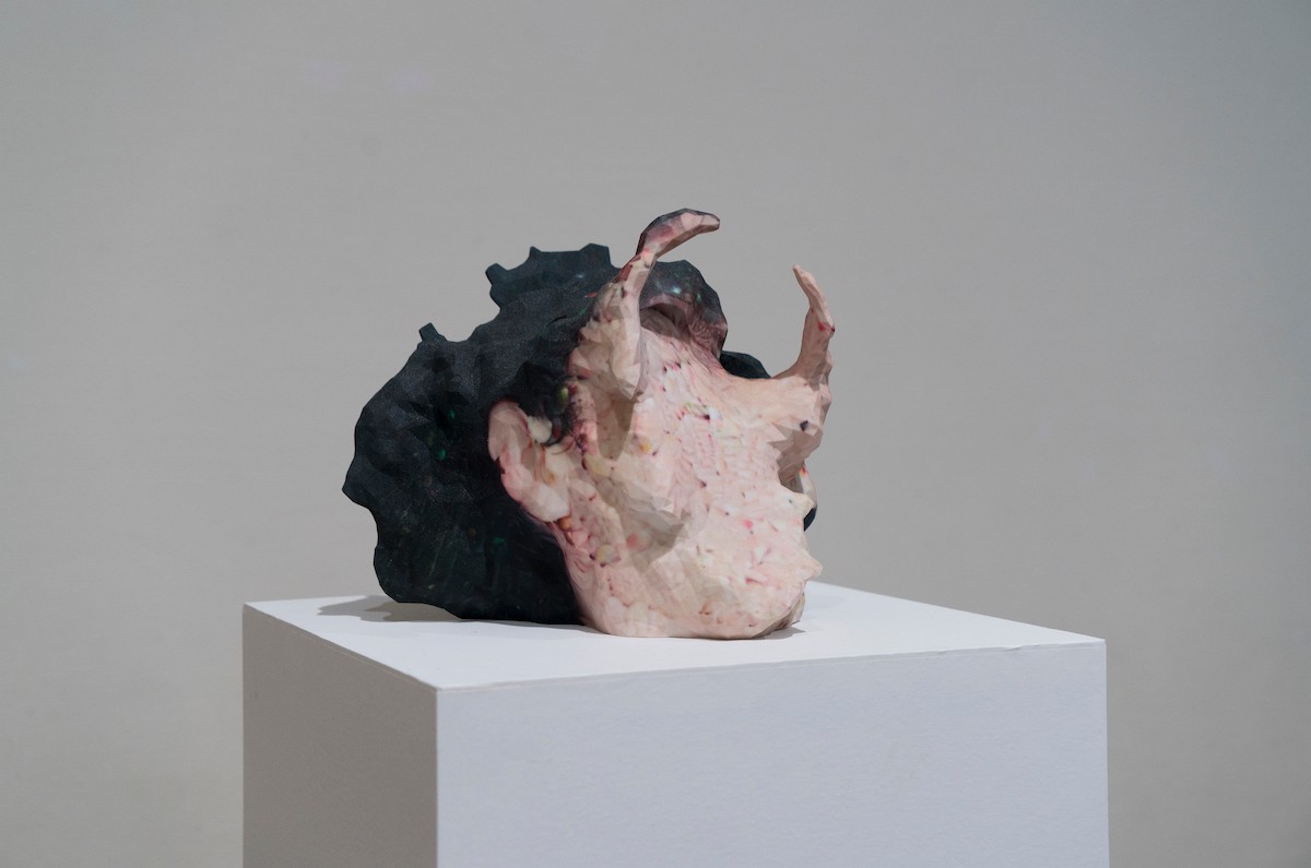 静物面具系列,2017,郭城。在“静物”系列中,郭城用 3D 打印全彩砂岩呈现了谷歌 DeepDream(人工神经网络算法)所观察到的“自己”。机器的观察不分生物非生物、人与非人,一切被“看”到的客体,皆被人工神经网络视为像素(数据)并加以分析处理。人的主体性被消解、物化,从而成为一种静物(still life)。