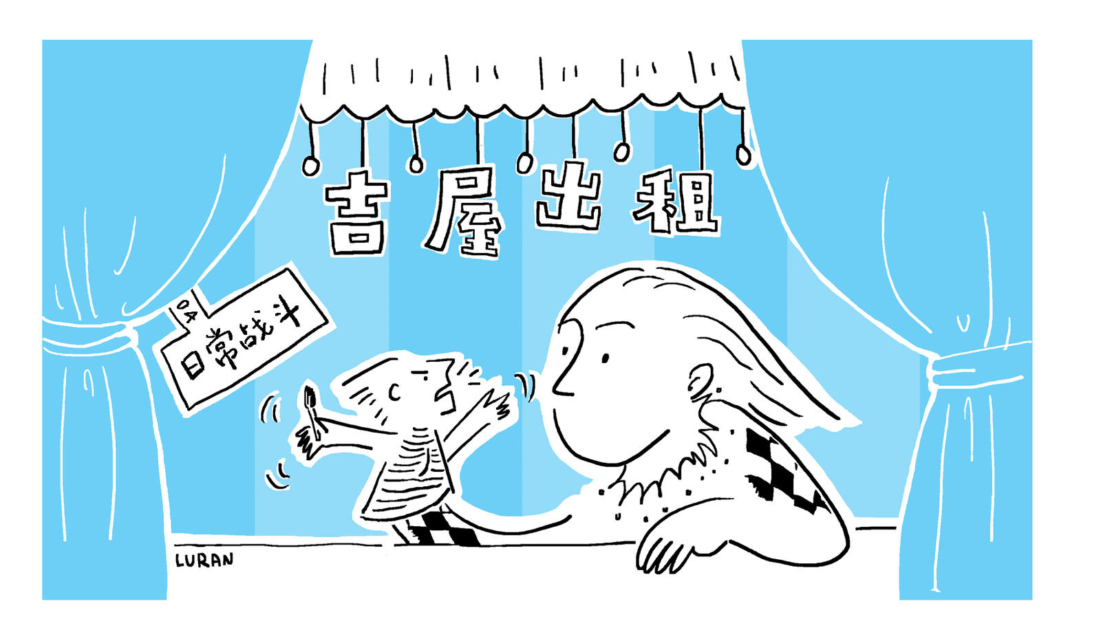 “屋” 是一个女人,“魂” 是她的灵魂,“吉屋出租” 则是 “魂” 对 “屋” 要挟 —— “屋” 真的很怕 “魂” 会离她而去。这一系列漫画,讲的是 “屋” 与 “魂” 之间的爱恨情仇。