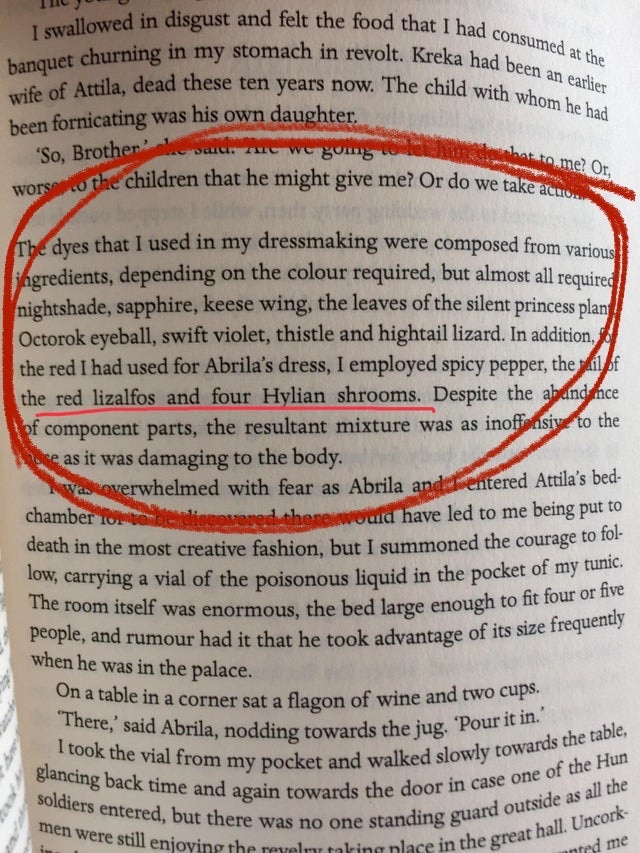 另一名作家 Dana Schwartz 发推评论道不知道这个是致敬还是彩蛋,但是这本书又不是幻想类小说,是一本基于真实历史背景的正剧向小说。Schwartz 又在谷歌上进行了一通猛如虎的搜索,然后发现了一份教你怎么在把衣服染红的材料表 —— 这当然也是来自《塞尔达》游戏里的。她认为伯恩可能就是在谷歌上随便一搜怎么染衣服然后把《塞尔达》的材料表当成真实世界的材料表了。