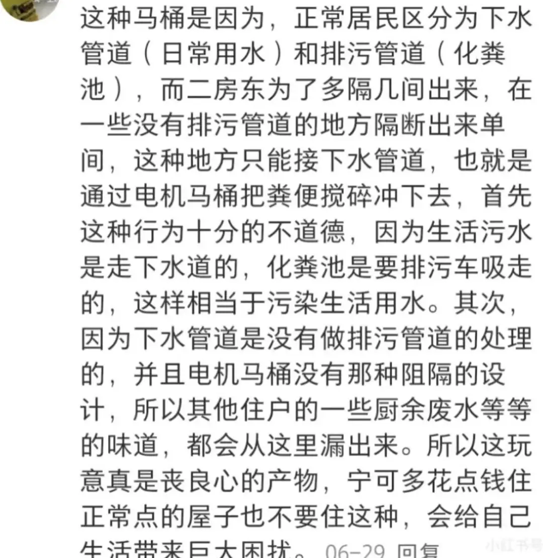 一整家的生活污水管道是相连的,别人的大便很有可能返到你的马桶里,你的屎走了,别人的屎来了,可谓来去之间;