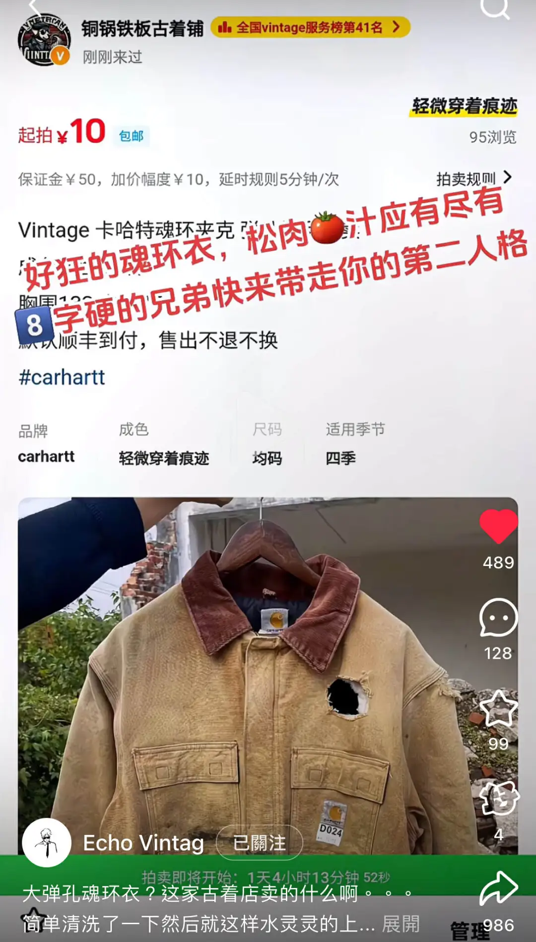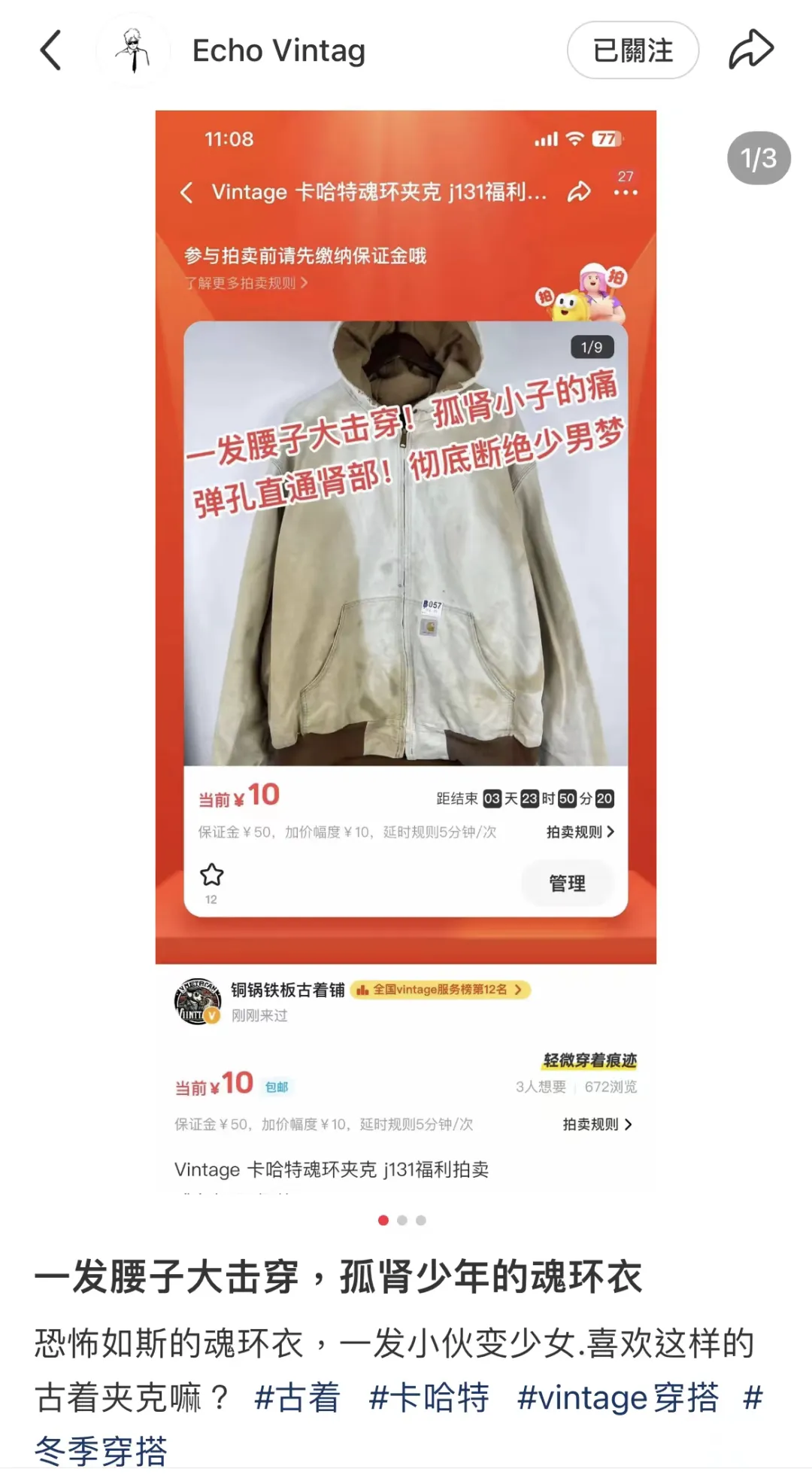 但近期,在各大社交平台上出现了一种被称为 “魂环衣” 的古着,卖家一反语焉不详的态度,直接而生动地描述起了上一任主人是怎么穿着这件衣服死的。