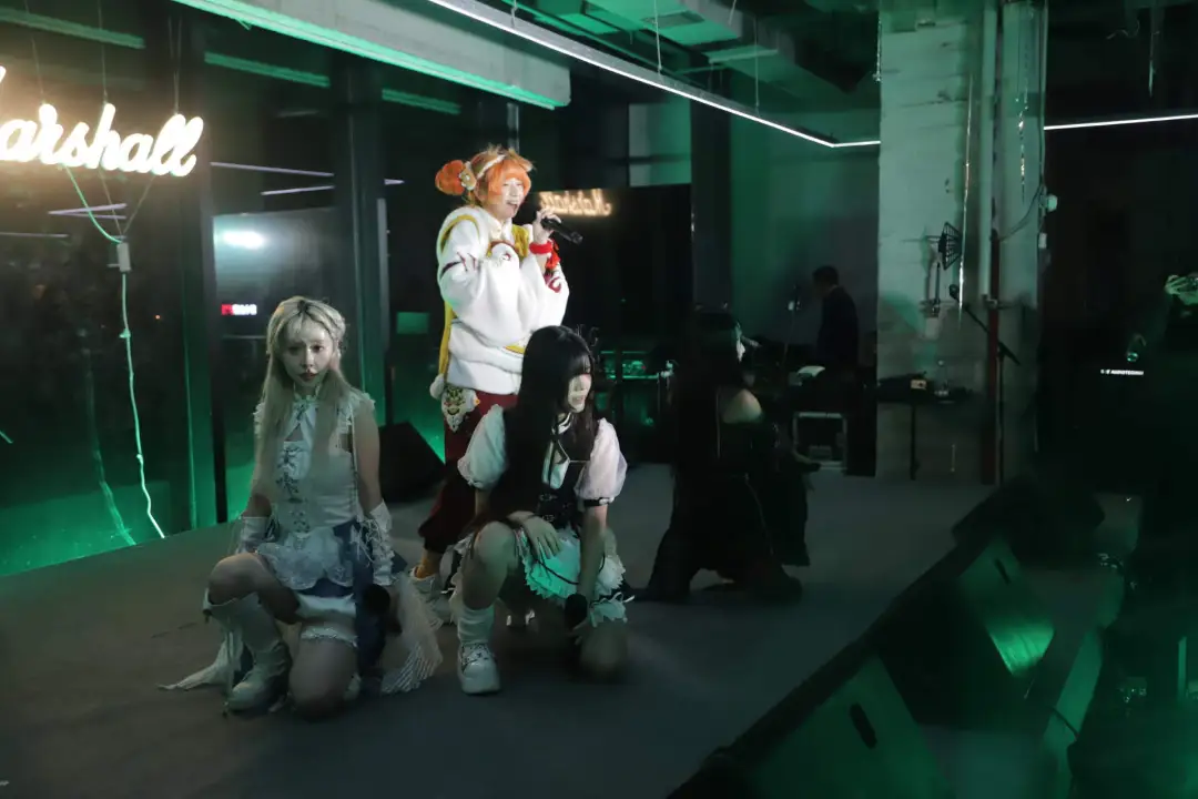 显然,现场大部分朋友都看惯了“地下”演出,但“地下偶像”的演出却是头一回看。偶像们首次面对“亚人”也有点忐忑。不过,虽然无人懂打call,但大家都踏着地偶元气满满的节奏锐舞了起来 ——