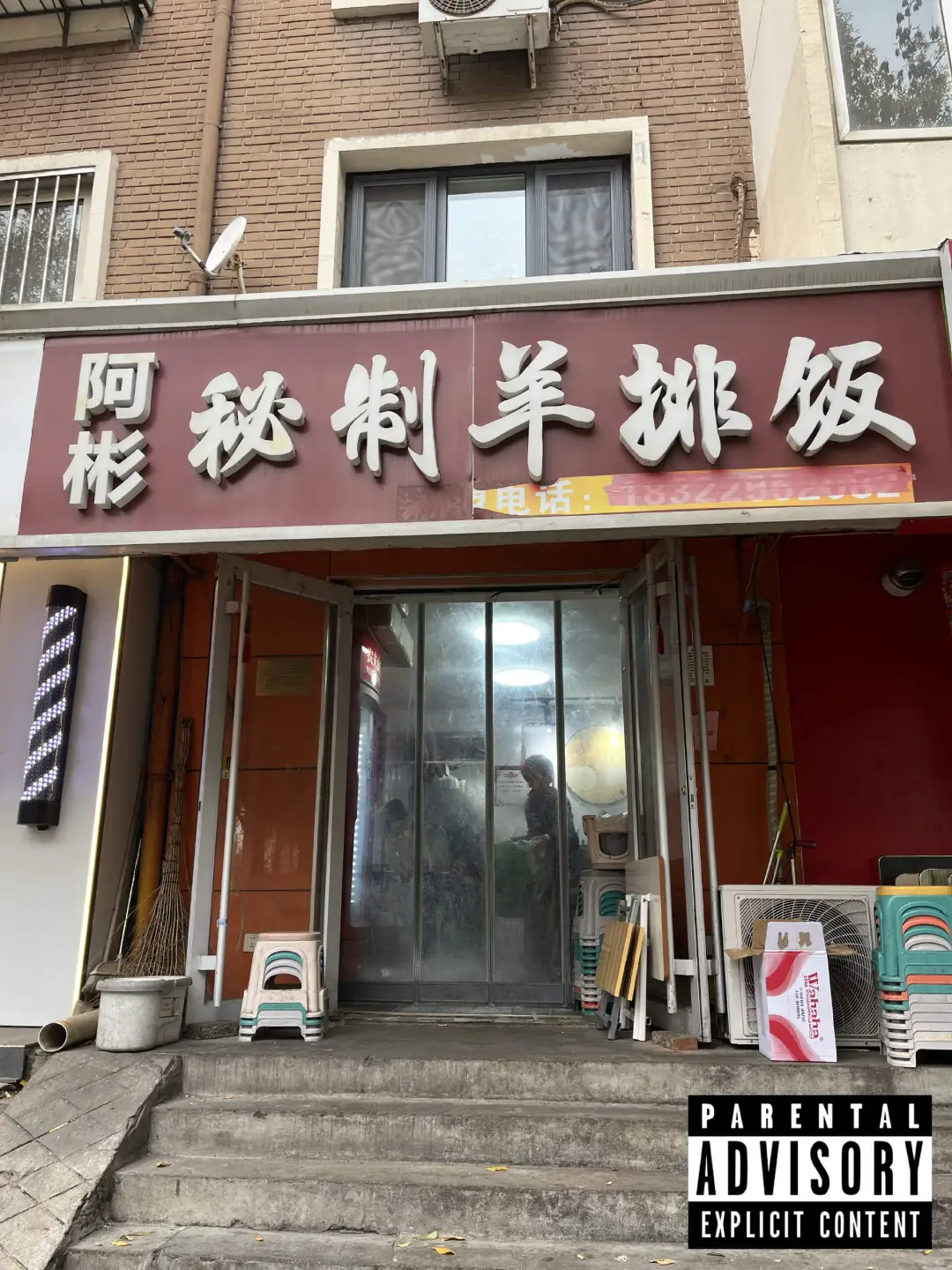冬日的增产道十分平和,路上没什么人。一阵风裹着寒意刮过来,我站在了阿彬羊排饭前。略显破旧的门脸下站着几个刚从店里走出来的嘻哈男孩,手里夹着烟,脸上挂着碳水满足的钝感。这时不远处传来了 2pac 熟悉的小曲儿,几个身穿西海岸风格,三两成群的年轻人,停下了一辆复古低趴 EVO,摇摇晃晃地走进了我眼前的这家 old school 羊排饭。