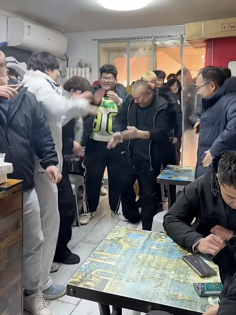两个人像心照不宣一样,互相成就,小店火了,慕名而来的人也越来越多。京津冀 rapper 心连心,河南、贵州、川渝地区说唱选手也都来打卡,和阿彬合影留念。