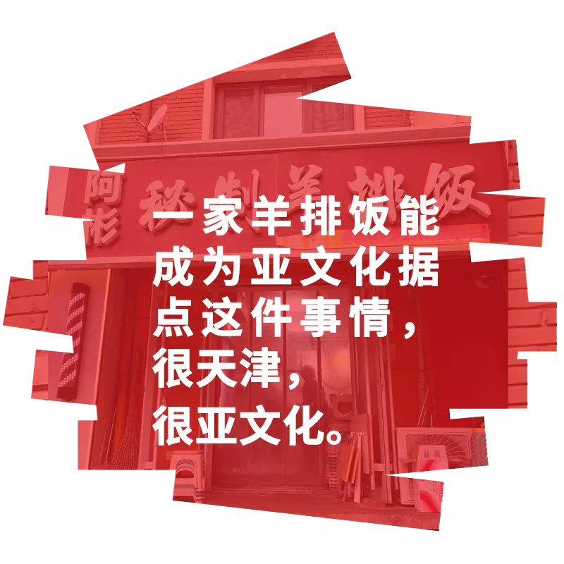 我小时候就听说天津河北区很 ganster,没事别随便去,因为都是拿重型机枪的都市传说。虽然是津式幽默,但在这片传递着爱与和平的土壤下孕育出来了一家有点怪的社区文化羊排饭,就很自洽了。