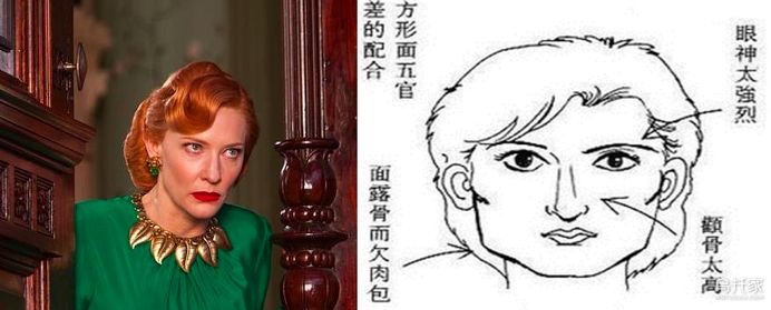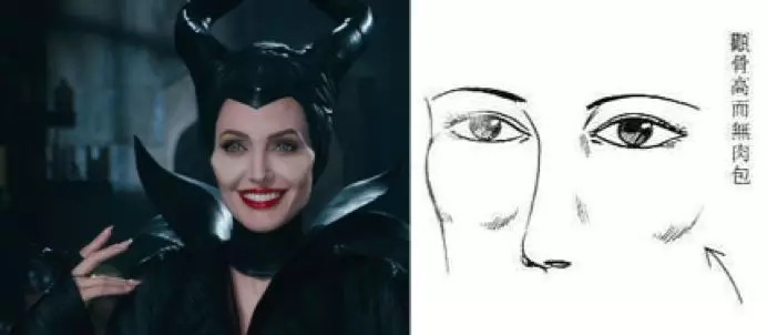 看了这么多案例,不禁有一个疑问浮现:怎么就这些女的一看就特坏、特不能惹、特心如蛇蝎呢?我的同事蔡蔡提供了一个思路:咱们从面相学找找根据。果不其然,原来影视里的恶女妆与传说中的 “克夫相” 竟有几分匹配: