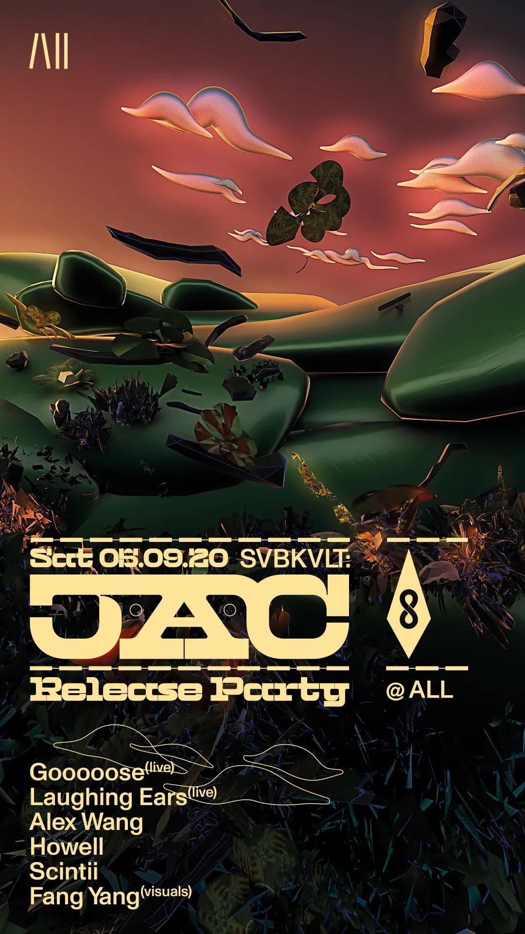 Line up:Gooooose [Live] /Laughing Ears [Live] /Alex Wang /Scintii /Howell /Fang Yang [Visuals]