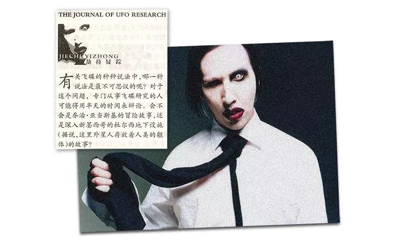 《飞碟探索》,是全中国,不,也许是全世界唯一敢于公开揭露极端音乐歌手罪恶身份的杂志。名满金属乐坛的玛丽莲 · 曼森(Marilyn Manson),多年来一直以恶魔撒旦自居,但广大乐评人只把这当成艺术比喻。只有飞碟探索的编辑勇敢地站出来指出,曼森是一个有暴力倾向的外星人。
