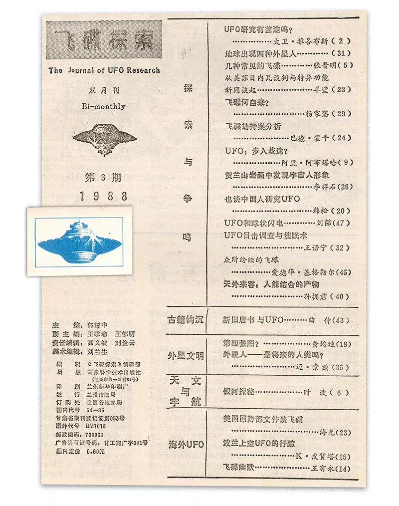《飞碟探索》,是一本晦涩难懂、无法解读的天书。编辑部迄今为止最让人难以理解的一次举动,纵观人类出版物史,都难以找出等量齐观的案例。1988年整整一年,《飞碟探索》杂志版权页上,刊首的标志性的“飞碟”图案,印的都是上下颠倒的。可能是美术编辑太想让大家目击一次真实的UFO了,于是按照春节贴福字的思路设计,寓意“飞碟到(倒)了”。