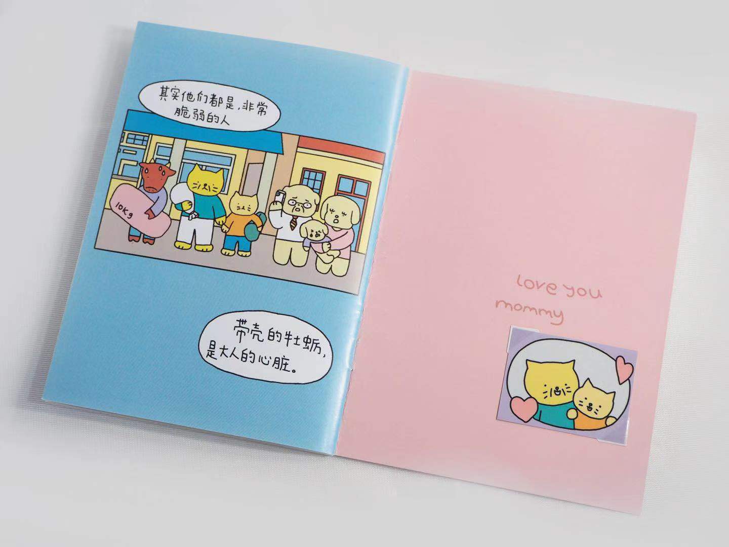 《带壳的牡蛎是大人的心脏》独立漫画家nini的作品,简单的色彩和造型却能传递最真挚的情感。