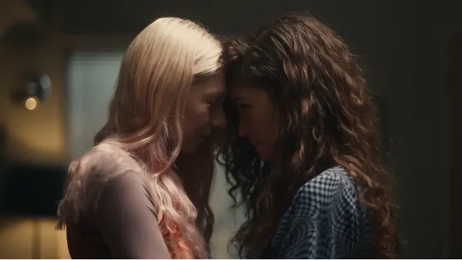 Rue 与 Jules 的羁绊是这场手术的典型案例,她们的关系仿佛是一种比爱情更致命的羁绊,它不是单纯的“爱”与“欲望”,而是通过社交媒体、谎言和脆弱交织成的依存。她们交换药片而非誓言,用颤抖的瞳孔代替“我爱你”的承诺。