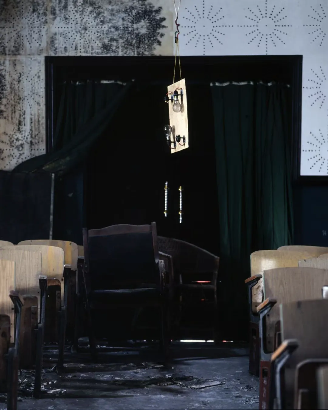 “睡前故事”展览取材自艺术家郑琛的同名摄影书,将家乡影像与25个民间故事交叉编辑。故事并非美好童话,而是惊悚、诡异、带幽灵与死亡气息;在农村,它们曾被用来恐吓小孩,但在郑琛镜头下,村庄的时间、气候、人物、动物和自然景观纠缠成一种萦绕感,让理性微微瓦解,也让被遗忘的记忆与情绪悄然浮现。