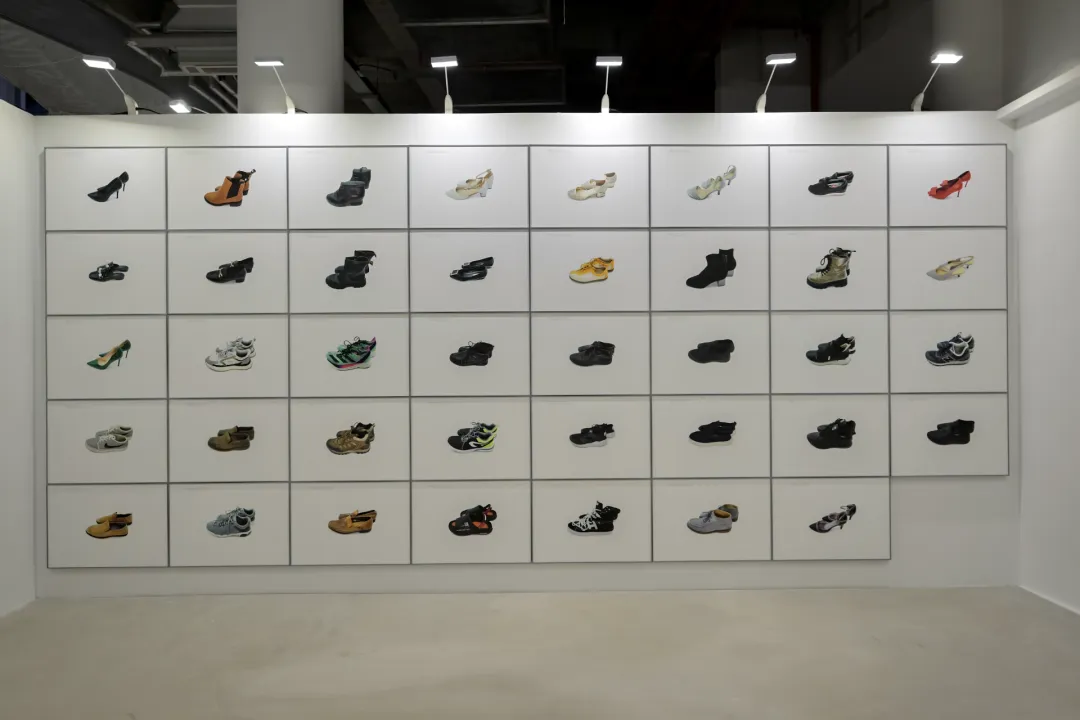 但这种“哇哦,很酷”的判断,在你走近之后会迅速失效。墙上的每一双鞋,都是实打实被穿过的旧鞋:鞋头塌陷、鞋底磨平、皮面起皱,甚至还残留着明显的年代痕迹。