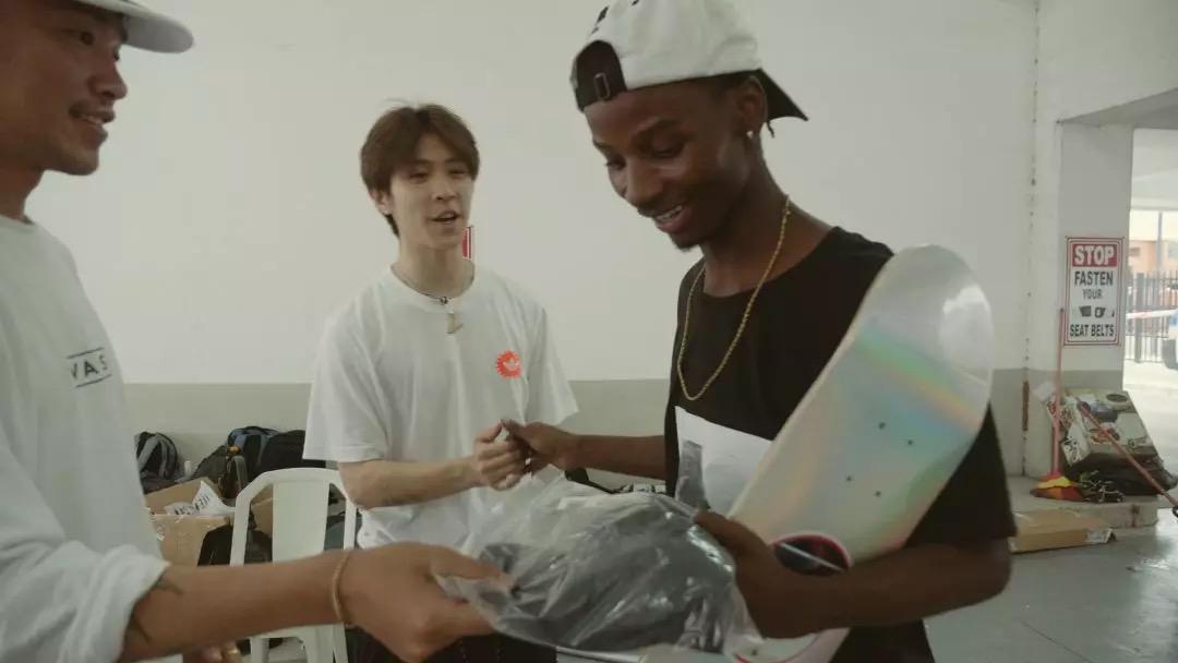 胡天祐把自己品牌的衣服送给当地滑手