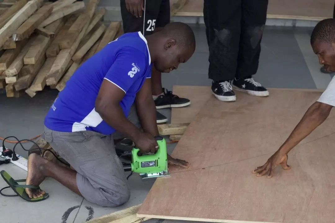用木板搭地形的年轻人 图片来自:mosako
