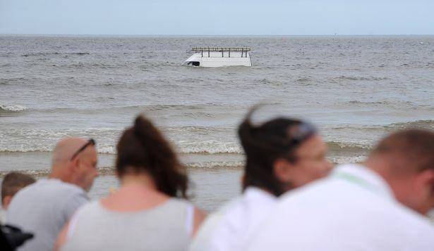 一位目击者说她看到了这辆白面包车拖着房车带着快艇来到海滩上,车子刚熄火她就觉得有些问题。车上的男子不停地打手势,然后他下车回到海滩和一名女子交谈,女子随即离开海滩求救。