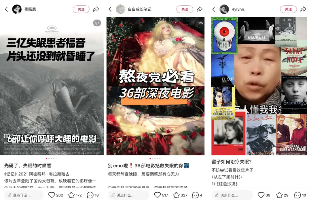 小红书博主起号也在用“打破睡电影羞耻”这一套,列一堆“好睡电影”“睡眠片单”“睡前必看”。伯格曼、塔可夫斯基、阿彼察邦、蔡明亮和阿巴斯从未如此受流量眷顾。