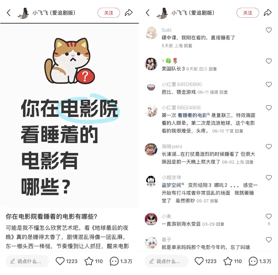 为什么一沾电影院的椅子我们就想睡?我在一条叫《对不起,我真的很擅长在剧院睡觉》的小红书帖子下面找到了答案——