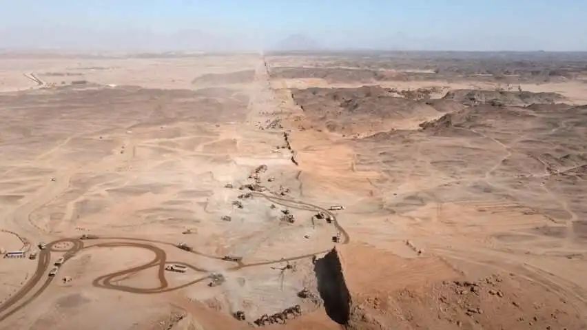 THE LINE 施工进展,摄于 2024 年 2 月|图源:dezeen.com